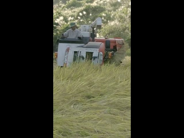 この、義父が運転しているコンバインという機械は非常に優秀で、根元から刈り取った稲の穂先から籾を分離して「脱穀」する。さらに、脱穀された後の藁は細かく刻まれ田んぼにばらまかれる。